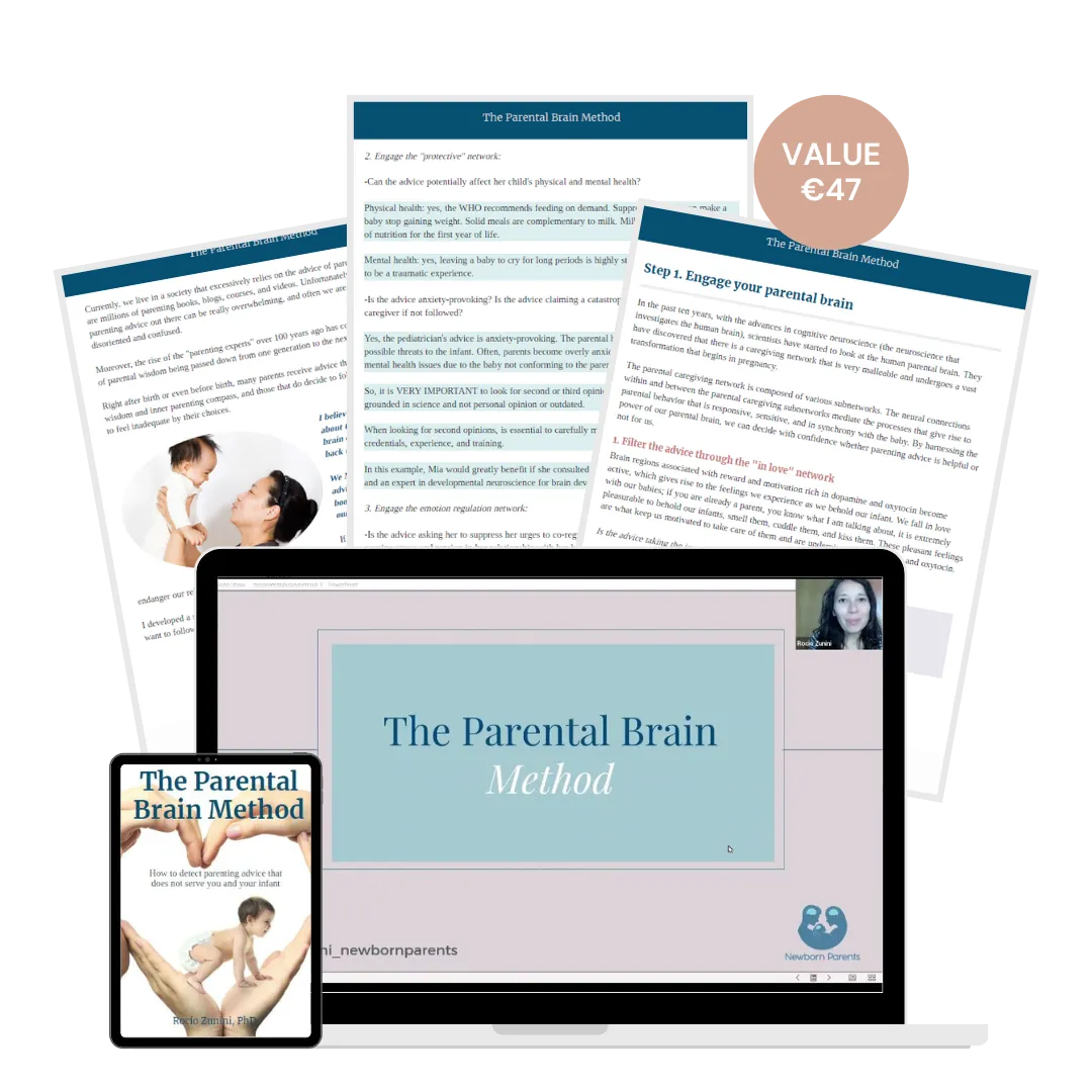 "I really enjoyed the Parental Brain course; so many useful nuggets to share with parents. I love learning about the science behind why it makes sense to keep infants close to their parents, and how doing so supports the changes that parents' brains undergo as part of the process of nurturing their babies. Rocio is knowledgeable and passionate about the topic and on top of that is a delightful person to impart this learning. She has created a wealth of resources to complement the course material which will no doubt come in useful in my own work with parents. Thank you Rocio!" - Tricia, Doula, Lactation Consultant, Holistic Sleep Coach (& mum of 3!)